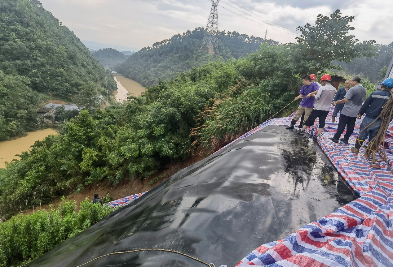 不畏艱險(xiǎn),砥礪前行。廠區(qū)內(nèi)市屬飛灰暫存庫(kù)東南角發(fā)生山體滑坡,根據(jù)地質(zhì)專(zhuān)家的建議,需要采取覆膜護(hù)坡的應(yīng)急方案。生產(chǎn)技術(shù)部部長(zhǎng)助理宋文潔同志帶領(lǐng)維保單位不畏艱險(xiǎn)、主動(dòng)請(qǐng)纓,冒雨沿著安全繩深入30余米的坡底進(jìn)行連續(xù)覆膜作業(yè),完工時(shí)幾近虛脫,受到在場(chǎng)主管部門(mén)領(lǐng)導(dǎo)和地質(zhì)單位專(zhuān)家的一致稱(chēng)贊,為公司贏得了嘉譽(yù)。